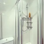 I rummen finns plattskärms-TV med satellitkanaler och TV med flera kanaler samt bekvämligheter som strykjärn med strykbräda och strykutrustning. Förutom soffa och skrivbord har inredningen öppen spis. I badrummet finns även en separat toalett, ett badkar och en dusch. Hårtorkar, badlakan och handdukar finns också för din bekvämlighet.